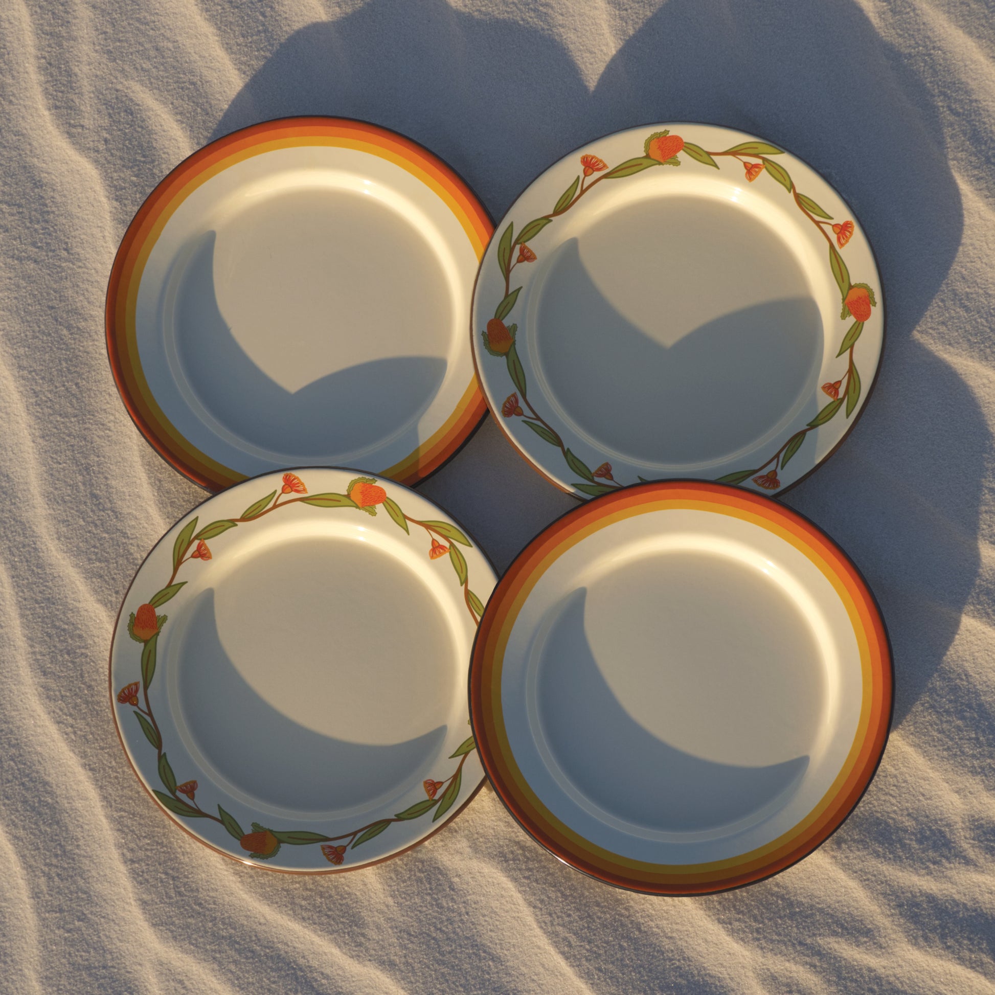 Get the best of both worlds with our enamel plate set - grab two of our classic enamel plates and two of our Australian Natives plates.